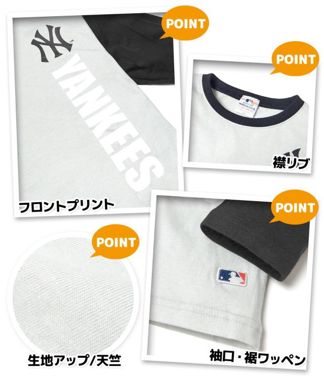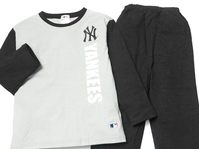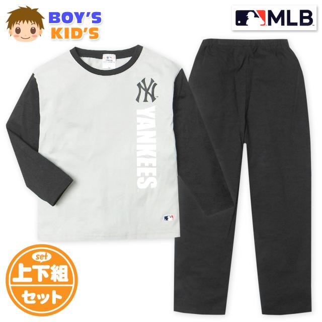 【送料無料】男児 キッズ 天竺 長袖 パジャマ MLB ヤンキース 上下組 本体綿100% 子供服 男の子 130cm yg-2824b-bk【メール便対応】