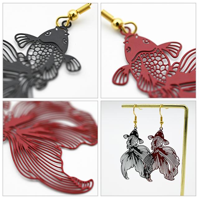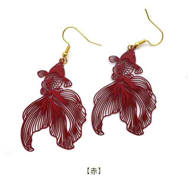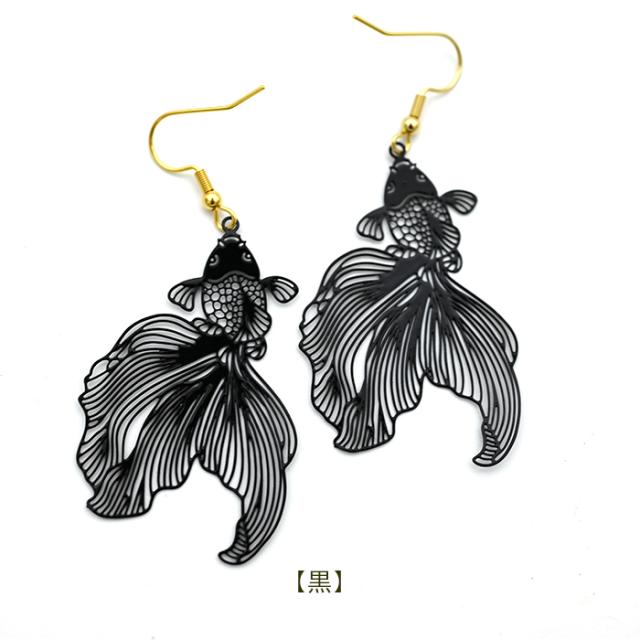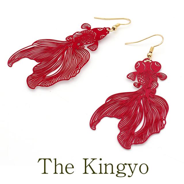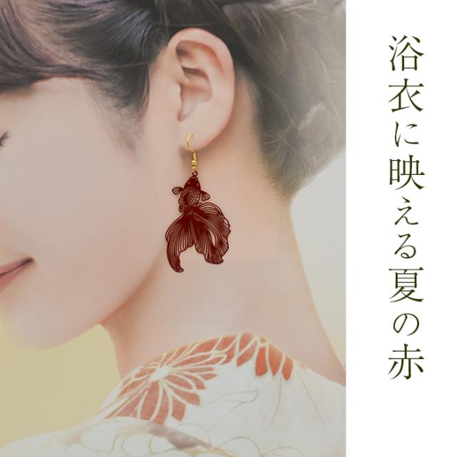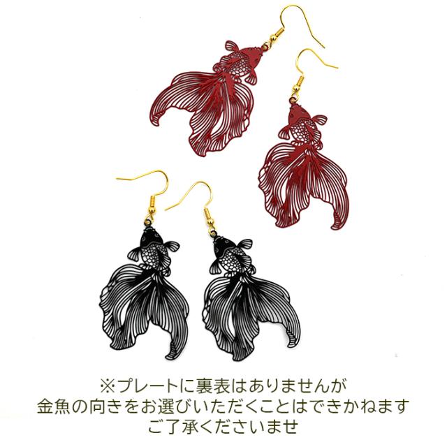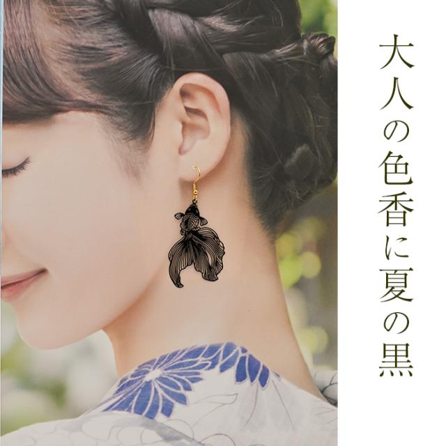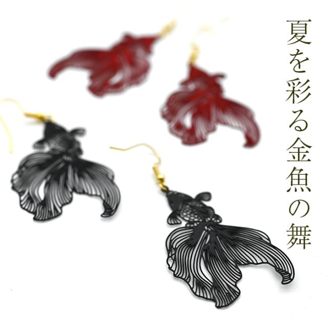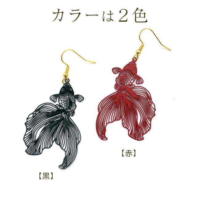 金魚 ピアス 小 黒 赤 フックピアス 金属アレルギー対応 ステンレス 琉金 風水 夏 祭 浴衣 着物 モチーフ かわいい おしゃれ ユニーク アクセサリー 個性 片耳 1個