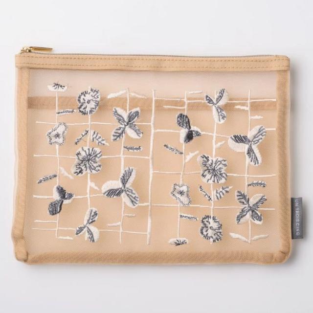 ○透け感のある素材に刺繍が施された、大人かわいい刺繍メッシュポーチです。