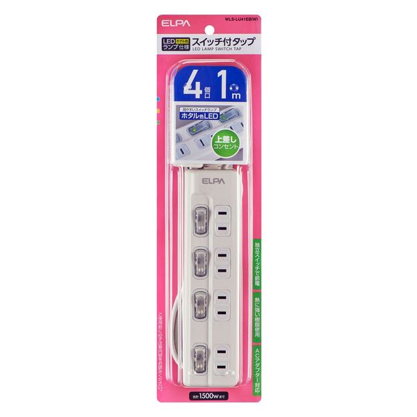 (まとめ買い)ELPA 電源タップ 個別スイッチ 上差し AC4個口 コード長1m WLS-LU41EB(W) 〔×3〕 【北海道・沖縄・離島配送不可】