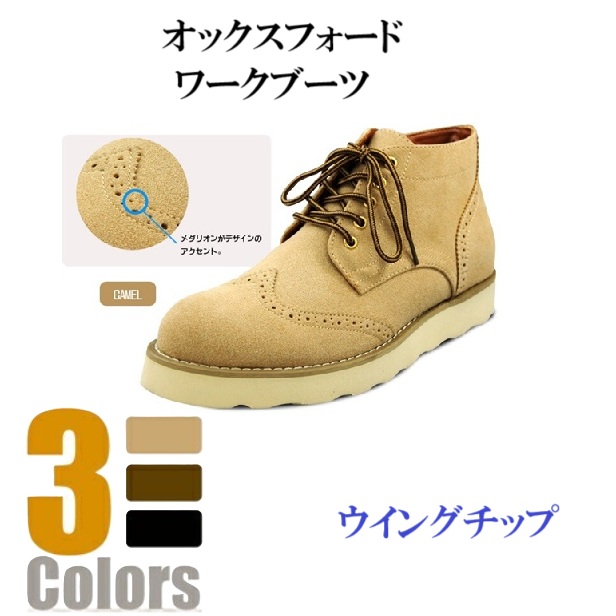 メンズ ブーツ サイドジップ オックスフォード ワークブーツ ウイングチップ ミドルカット おしゃれ 履きやすい 歩きやすい 軽量 軽い