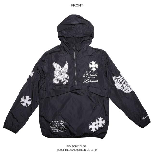 【30%OFF】REASON アウター 長袖 マウンテンパーカー ハーフジップ ブルゾン フーディ メンズ 黒 大きいサイズ リーズン アノラック ナイロン ナイロンジャケット マンパ ライトアウター 派手 総柄 撥水 軽量 b系 ヒップホップ ストリート系 ブランド 服 2025秋冬 RR5115