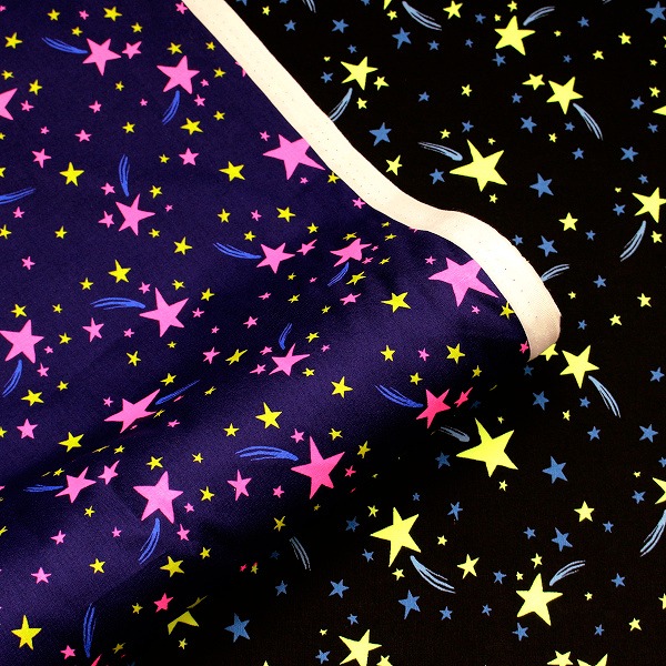【10cm単位価格】 蛍光プリント ポップスター 星 スター シーチング 綿100% 生地 布 約110cm幅 SPS ゆうパケット2.5m対応 ( ハンドメイド 手作り ベーシック バッグ シューズ入れ 手芸 裁縫 入園 入学 巾着 雑貨小物 内布 コスプレ 舞台衣装 )