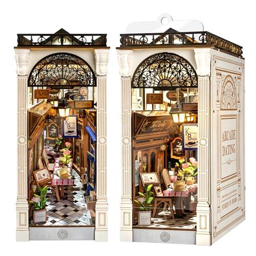 ブックヌック キット DIY 立体パズル クラフト 木製手作り ミニチュア ドールハウス キット ブックスタンド 組み立て本棚装飾 LEDスイ