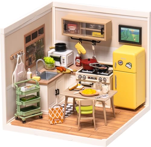Robotime プラスチック DIYミニチュアハウスキット ドールハウス ミニチュアフード おもちゃ 人形用ハウス ledライト付き プレゼン