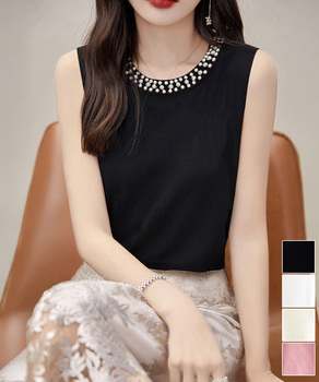 パール付きトップスノースリーブニット夏服 送料無料 即日発送