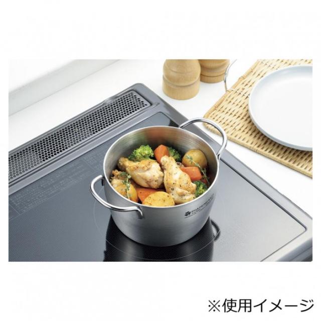 商品詳細:焚火、炙り火にも使用でき、蓋はステンレス3mm厚と重いので、アウトドアの炊き込みや煮込み調理に最適です。 生産国:日本 素材・材質:鍋本体:ステンレス鋼、アルミニウム(三層構造)蓋・ハンドル:ステンレス鋼 商品サイズ:約155×212×110mm(本体高さ:90mm) 重量:約1150g 仕様:容量:約1.4L(底の厚さ2.0mm)使用熱源:ガス・100V・200V、IH調理器OK