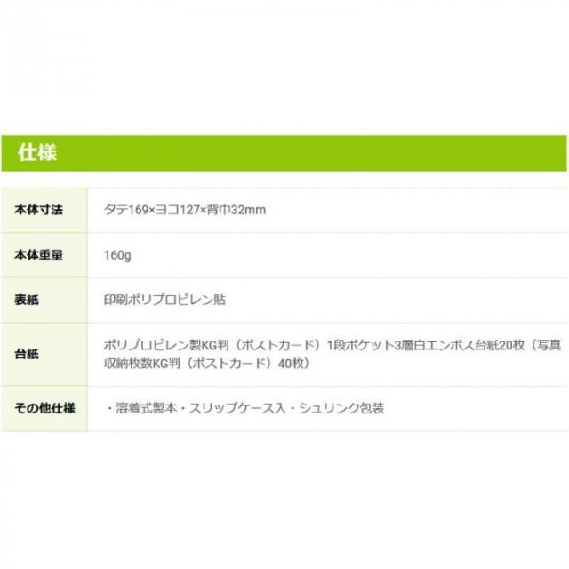 商品詳細:はがき・KG判写真が40枚収納でき、保管しやすい透明スリップケース入です。 生産国:中国