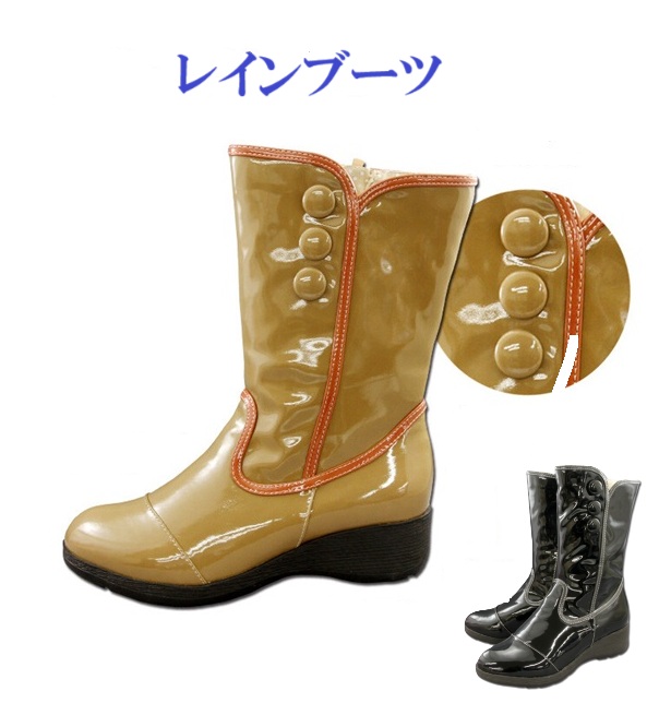 レインブーツ レディース 防水 ブーツ ロング ミドル ローヒール フラット ウェッジヒール エナメル レインシューズ 黒 大きいサイズ 雨 雪 梅雨 晴雨兼用