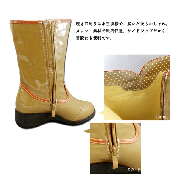 履き口周りは水玉模様で細部にまでおしゃれにこだわったデザインです!