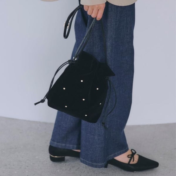スタッズスエード調巾着ショルダー
