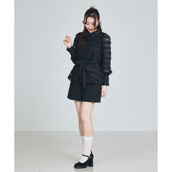 リボンは取り外し可能で、シンプルなスタイルでもウエストに巻き付けてペプラムブラウス風にしても可愛く、さまざまな着こなしが可能です。