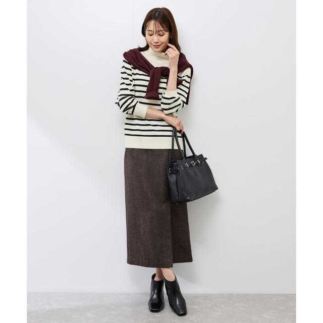 ・レザーやツイード素材のスカートで異素材ボトムで質感をミックスすると、シンプルながらこなれた印象に。