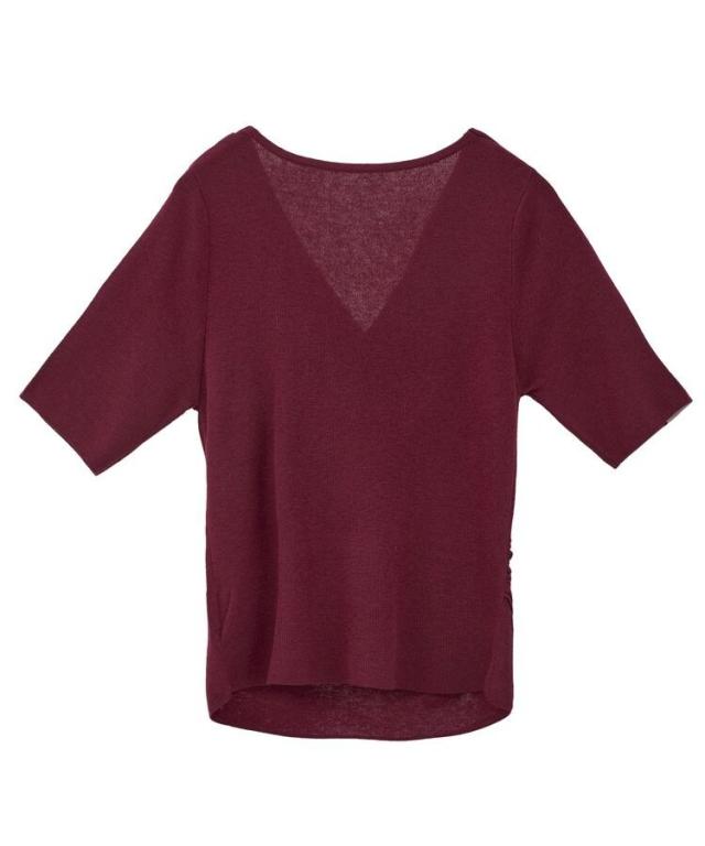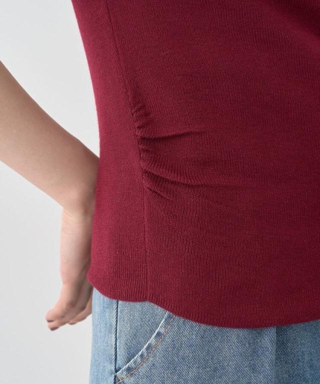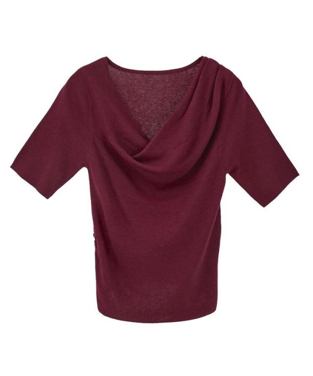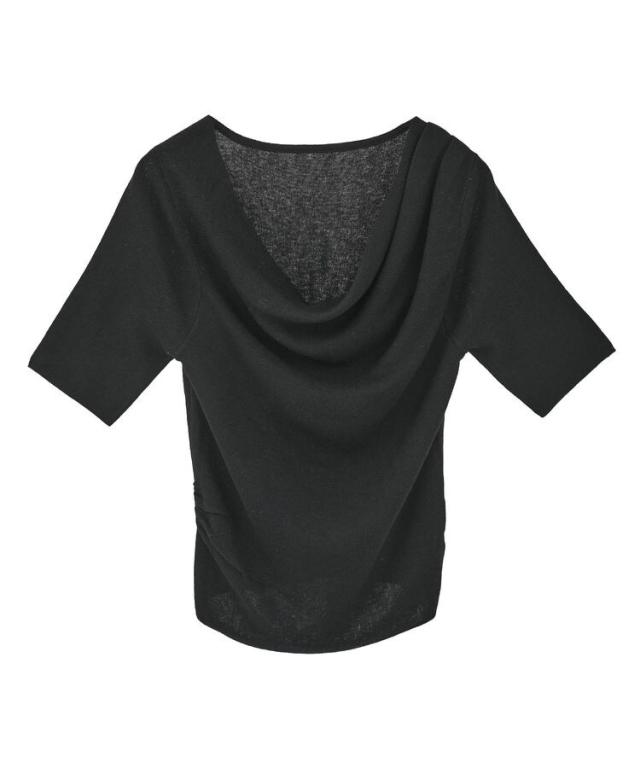 ソフトな素材感で着心地の良いニットプルオーバー。しなやかなドレープがデコルテを上品に飾り、女性らしい洗練された雰囲気を演出します。程よくボディフィットするコンパクトフォルムがトレンドのワイドボトムとも好相性。まだ暑さの残る時期から秋らしい着こなしを楽しめるおすすめのアイテムです。透け感[なし]