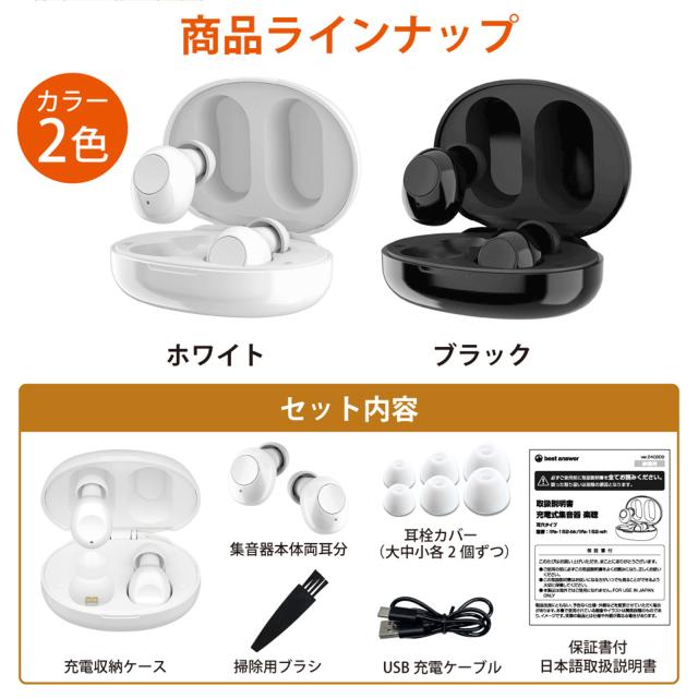 集音器 充電式 ワイヤレス 楽聴 ベストアンサー オシャレ 充電式の集音器 充電できる収納ケース イヤホン 小型 集音機 耳穴式 両耳 オシャレ スマート らくちん