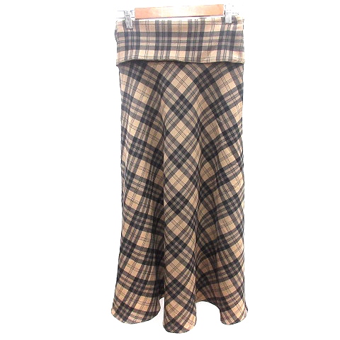 【中古】マジェスティックレゴン フレアスカート マキシ ロング 2way ハイウエスト リボン チェック S 茶 ブラウン