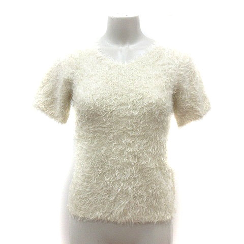 【中古】ストロベリーフィールズ STRAWBERRY-FIELDS ニット セーター Vネック シャギー 半袖 アイボリー レディース