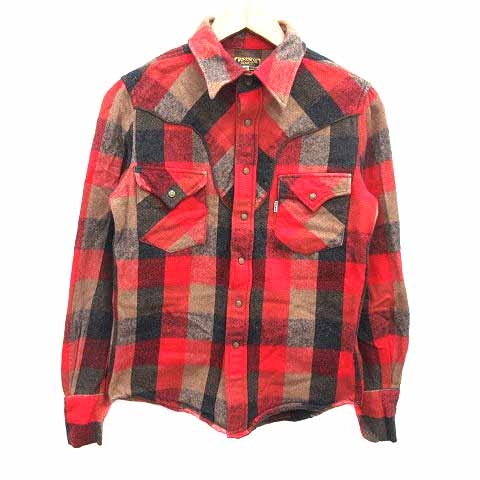 【中古】ゴーウエスト GOWEST ネルシャツ ウエスタン 長袖 1 S 赤 レッド ベージュ /YK メンズ