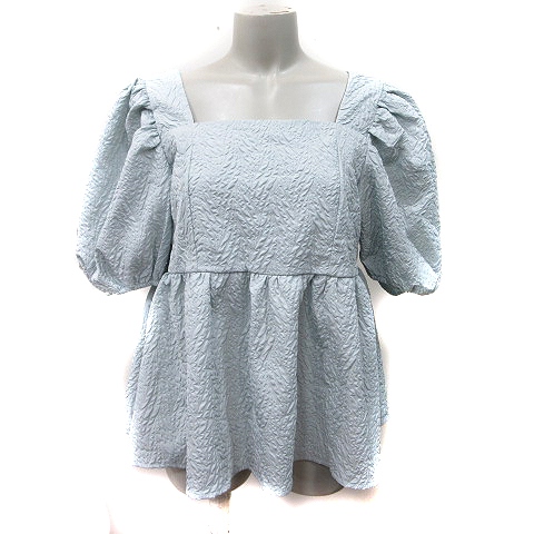 【中古】ラジエム La-gemme シャツ ブラウス スクエアネック パワースリーブ 半袖 M 水色 /YI レディース