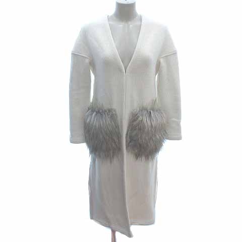 【中古】アウィーエフ AuieF ノーカラーコート フェイクファー 長袖 38 M 白 ホワイト /YK レディース