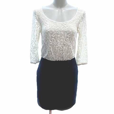 【中古】ロイヤルパーティー ROYAL PARTY ワンピース ミニ ドッキング シフォン 総柄 七分袖 38 M 白 紺 レディース