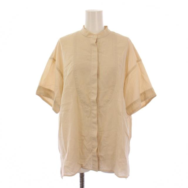 【中古】アンクレイヴ uncrave バンドカラー シャツ ブラウス 半袖 F ベージュ /BM レディース