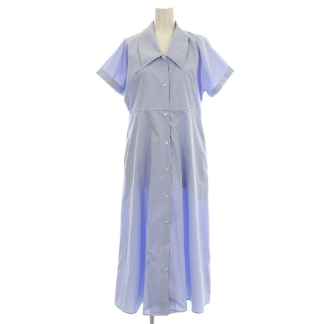 【中古】シップス SHIPS any フラットカラー Vネックフレアワンピース 半袖 ロング シャツワンピース F 水色