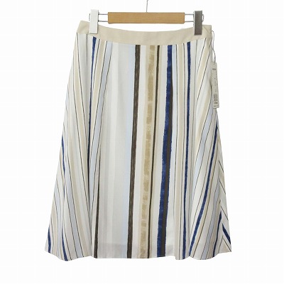 【中古】未使用品 ロートレアモン LAUTREAMONT スカート フレア ストライプ 膝丈 40 ベージュ ブルー