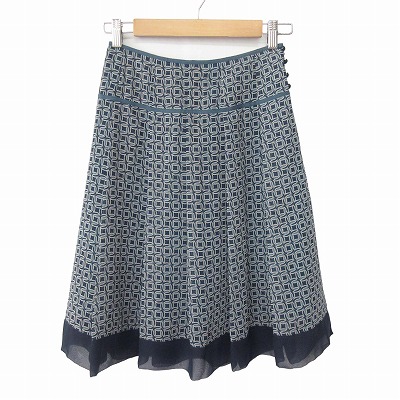 【中古】エムケー ミッシェルクラン MK MICHEL KLEIN スカート 総柄 膝丈 フレア 38 緑系 レディース