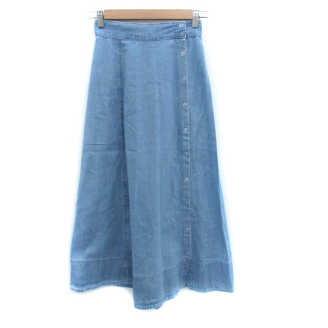【中古】ストラ Stola. フレアスカート デニムスカート ボタンダウンスカート ロング丈 34 XS 水色 ライトブルー