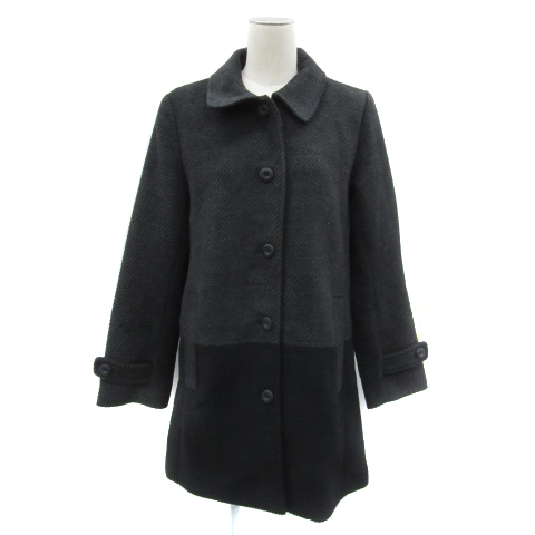 【中古】シューラルー SHOO・LA・RUE ステンカラーコート ロング丈 無地 L 黒 ブラック ダークグレー /YS2 レディース