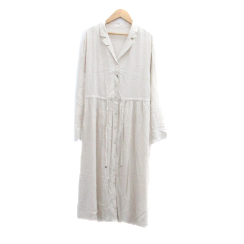【中古】未使用品 ページボーイ PAGE BOY シャツワンピース オープンカラー ロング丈 長袖 F アイボリー レディース