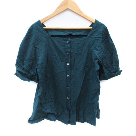 【中古】ナチュラルビューティーベーシック シャツ ブラウス 半袖 スクエアネック S モスグリーン