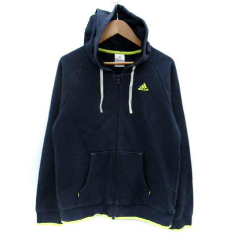 【中古】アディダス adidas パーカー ジャケット ミドル丈 ロゴ刺繍 M 紺 ネイビー 黄 イエロー /SM3 レディース