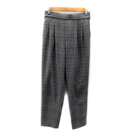 【中古】グローバルワーク スラックスパンツ テーパードパンツ ロング丈 グレンチェック柄 M グレー レディース