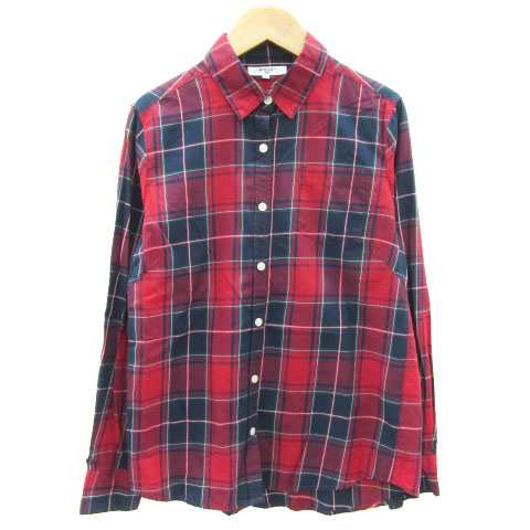 【中古】ナチュラルビューティーベーシック カジュアルシャツ 長袖 チェック柄 M 赤 レディース