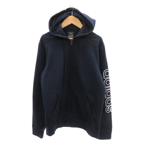 【中古】アディダス adidas ジャケット パーカー ミドル丈 裏起毛 M 紺 ネイビー /YK37 レディース