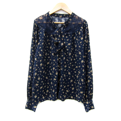【中古】トルテ TORTE ブラウス シャツ 長袖 リボンタイ 花柄 マルチカラー レース F 紺 ネイビー /SY35 レディース