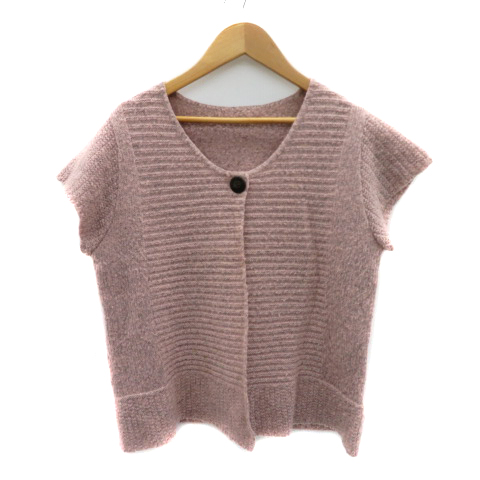 【中古】リボン Ribon カーディガン ミドル丈 半袖 M〜L ピンクベージュ /YK40 レディース