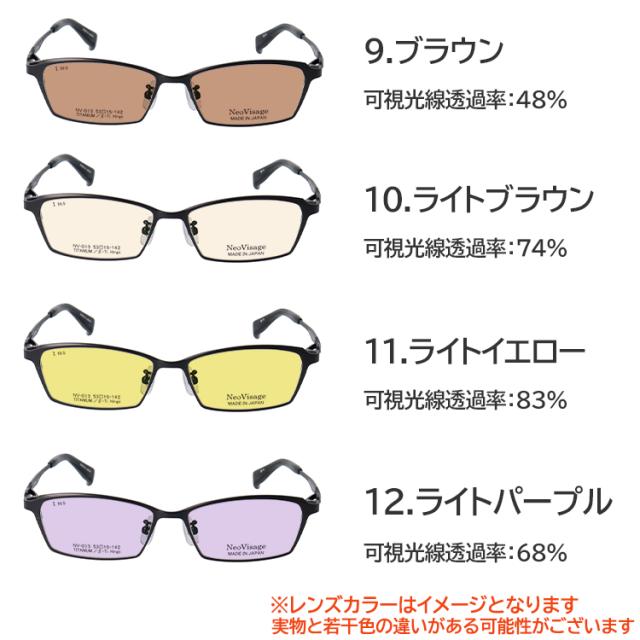 | 商品詳細 Neo Visage ネオヴィサージュフレームのフレームに、 ライトカラーレンズを組み合わせた、サングラスです。 メンズ 男性用モデル 日本製 メイド イン ジャパン MADE IN JAPANのチタン製メガネフレームです 人気のチタンフレーム&バネのように外に広がり、こめかみに優しくフィットするβ-チタンバネテンプルを採用! こちらのカラーレンズはUV400nmを約99%カット、 SPF50+ PA+++に対応した高性能カラーレンズとなります ブルーライトも約40%カット レンズカラーは16色の中からお選びいただけます。 <レンズカラー:可視光線透過率 > 1.グレー:46% 2.スモーク:42% 3.ライトグレー:61% 4.ライトスモーク:69% 5.ブルー:44% 6.ブルースモーク:50% 7.ライトブルー:61% 8.クリアブルー:78% 9.ブラウン:48% 10.ライトブラウン:74% 11.ライトイエロー:83% 12.ライトパープル:68% 13.グリーン:53% 14.ライトグリーン:71% 15.ライトピンク:76% 16.ライトオレンジ:75% | |