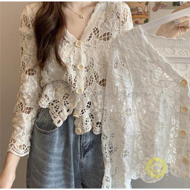 カーディガン レディース ボレロ レース サマージャケット 彫り メッシュ し 夏 春 秋 カーディ