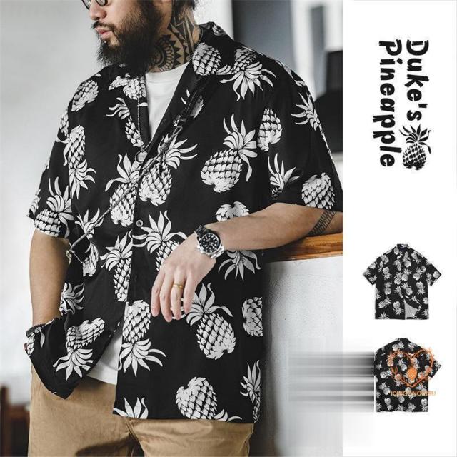 かりゆしウェア アロハシャツ メンズ 半袖シャツ 夏 大きいサイズ 柄シャツ パイナップル柄 黒 白 キューバシャツ 半袖シャツ メンズシャツ カジュアルシャツ