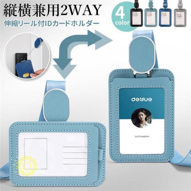 社員証ケース IDカードホルダー 縦横兼用 IDカードケース レディース メンズ ネックストラップ カードケース 首掛け 両面用 伸縮リール式 ネームホルダー