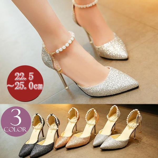 パンプス ラメ 結婚式 キラキラ 前撮り 黒 ゴールド シルバー ウェディング シューズ 二次会 ブライダルシューズ ストラップ ウエディングシューズ ウェディング