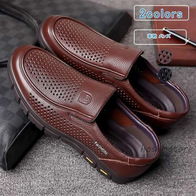 革靴 メンズ レザー 透かし編み モカシン スリッポン ビジネスシューズ 紳士靴 大人 通気性 蒸れない 軽量 アウトドア カジュアル おしゃれ 履きやすい