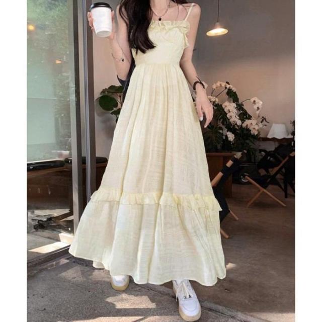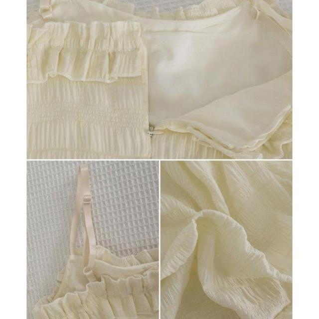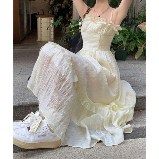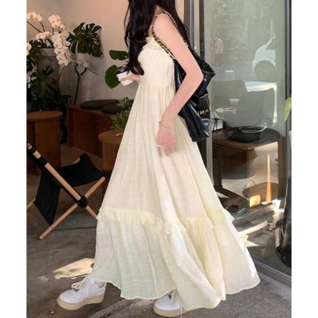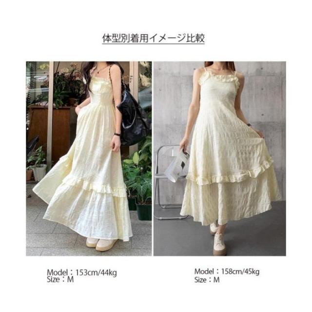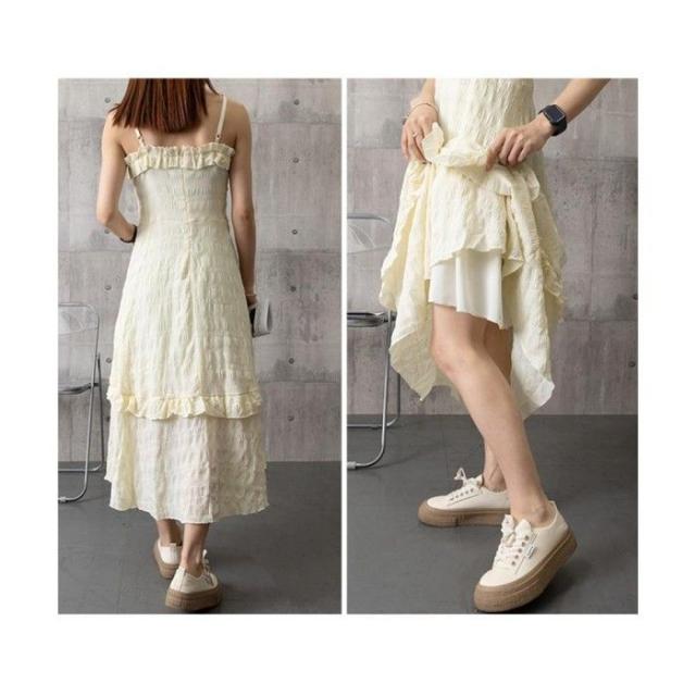 韓国風ミモレワンピースきれいめ ノースリーブフリルワンピース 大人可愛いフレアワンピースおしゃれ 着やせワンピ体型カバー