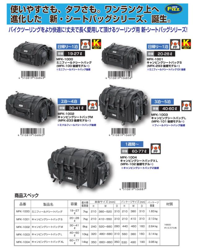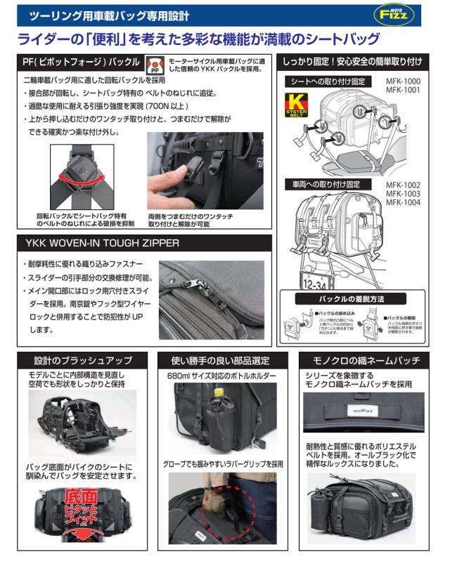丈夫で長く愛用して頂けるツーリング用 新・キャンピングシートバッグシリーズ!ライダーの「便利」を考えた多彩な機能が満載のシートバッグです。