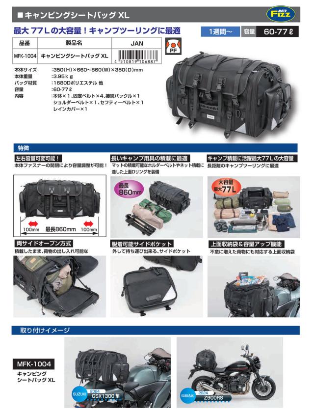 ★送料無料★Moto Fizz MFK-1004【1週間〜・可変容量:60-77L】キャンピングシートバッグ XL 4510819106887 /タナックス