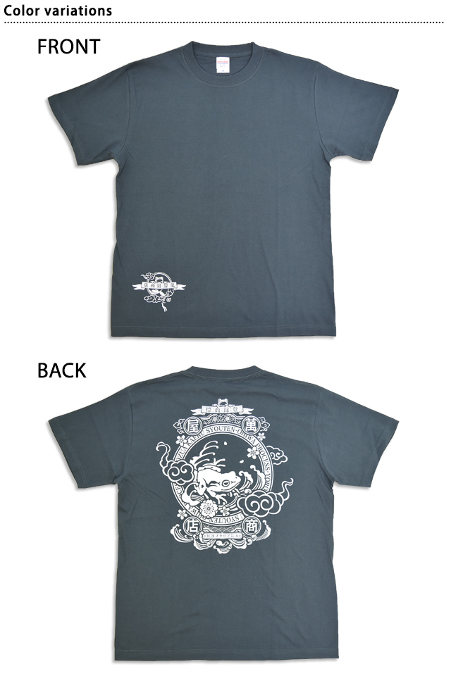 萬屋商店のロゴをバランス良くプリントし、インパクトのあるバックスタイルを完成させました。