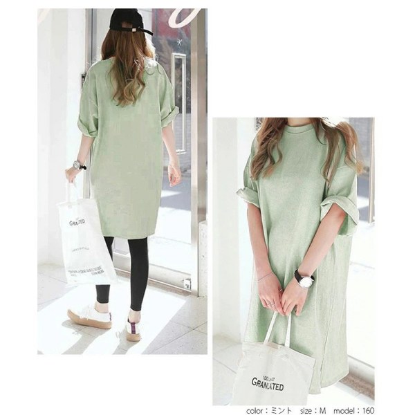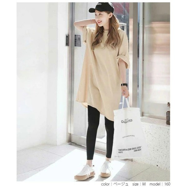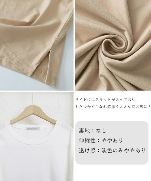 チュニックTシャツ サイドスリット レディース 無地 ロングTシャツ ベーシック 半袖トップス シンプル Tシャツワンピース 春夏 カットソー